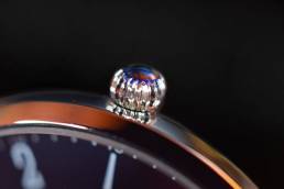 Zifferblatt: Sonnenschliff in dunklen metalic Farben.